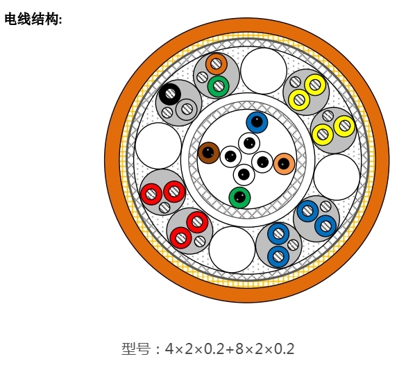导体、结构:包括电源线、信号线,或者光纤。电源2-12芯,截面积0.5-6mm2